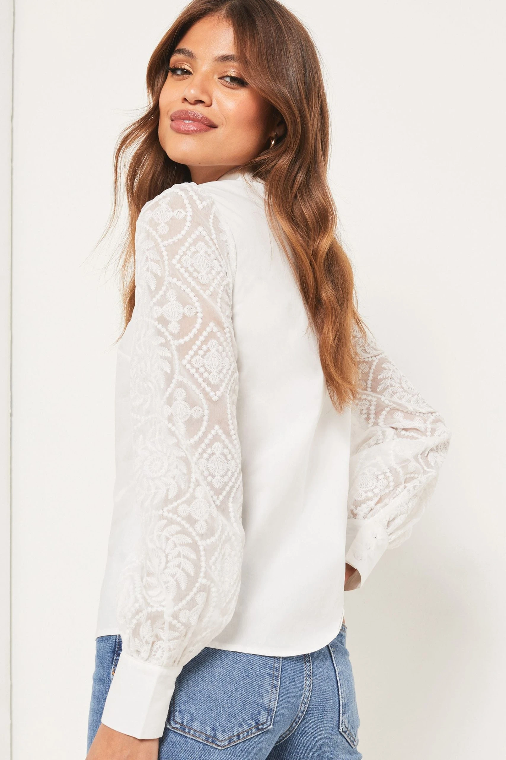 A lace long sleeved button up collared shirt. Perfect for everyday wear with Jeans or workwear.