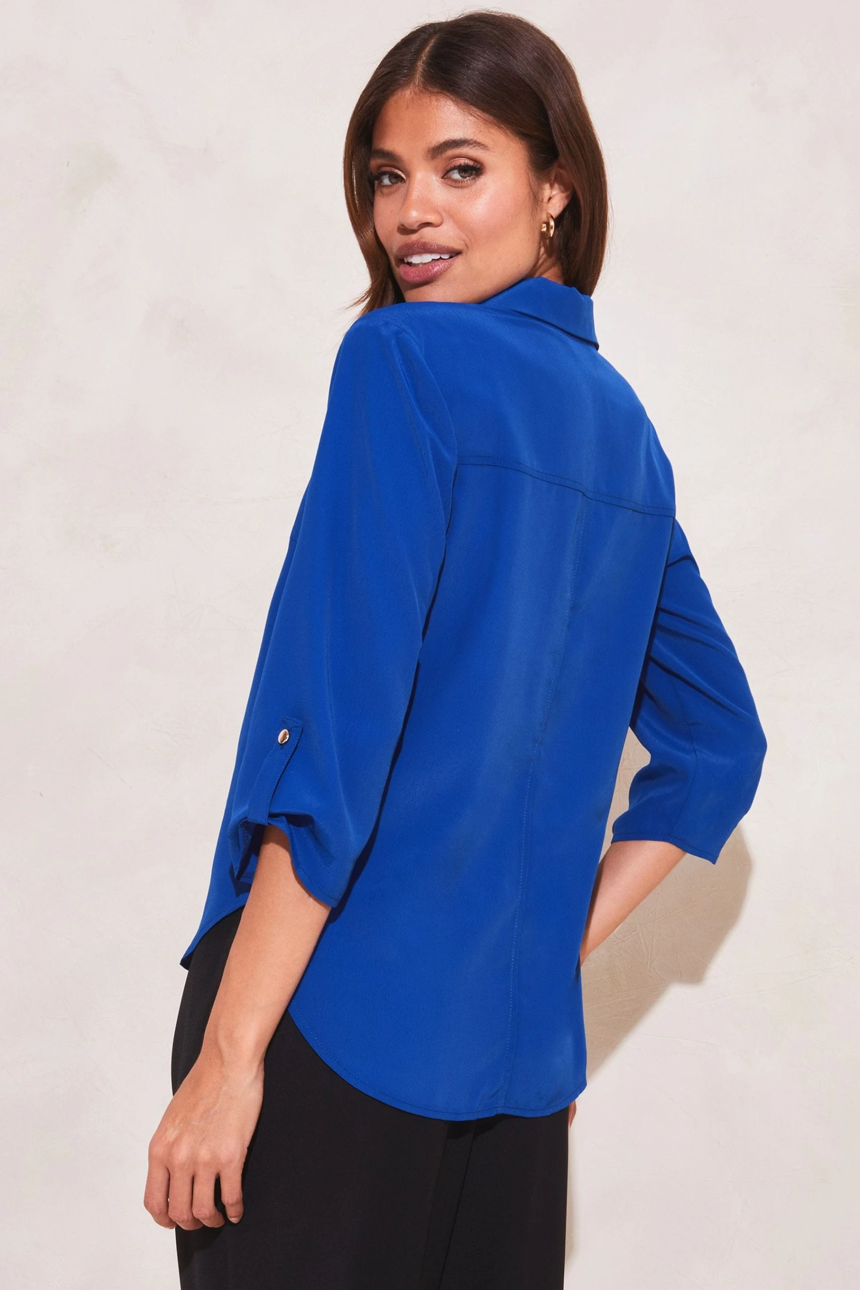 Relaxed fit blouse from Lipsy featuring a notch V neck neckline. This style has 3/4 sleeves with a roll up and tab. A smart blouse, perfect for every day wear.