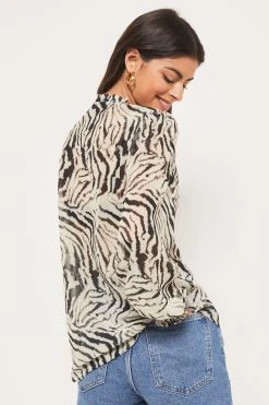 Lipsy Trim Insert Ruffle V Neck Tie Long Sleeve Chiffon Blouse