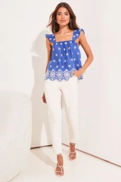 A gorgeous broderie cami with a tie back detail and a scallop hem. Model wears size UK 8.