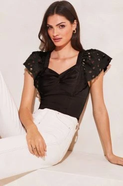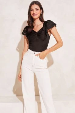 A gorgeous frill broderie sleeve top from Lipsy. Featuring a twist front and delicate tassled tie back. This lightweight touch of linen top is ideal for those summer days and are the perfect addition to your Spring / Summer wardrobe.