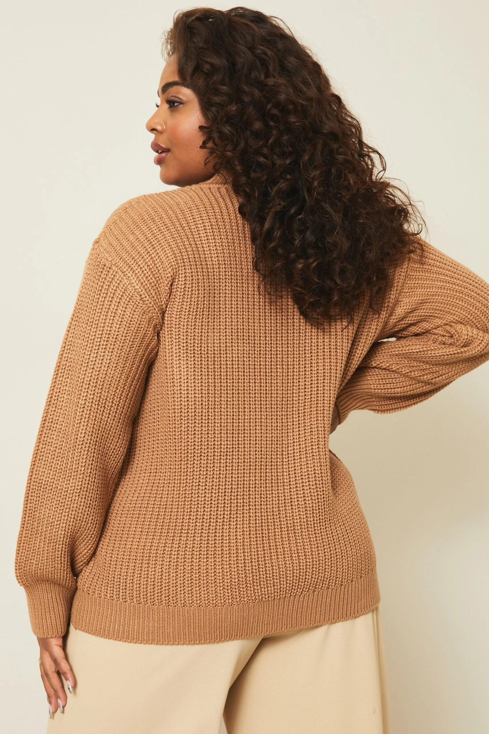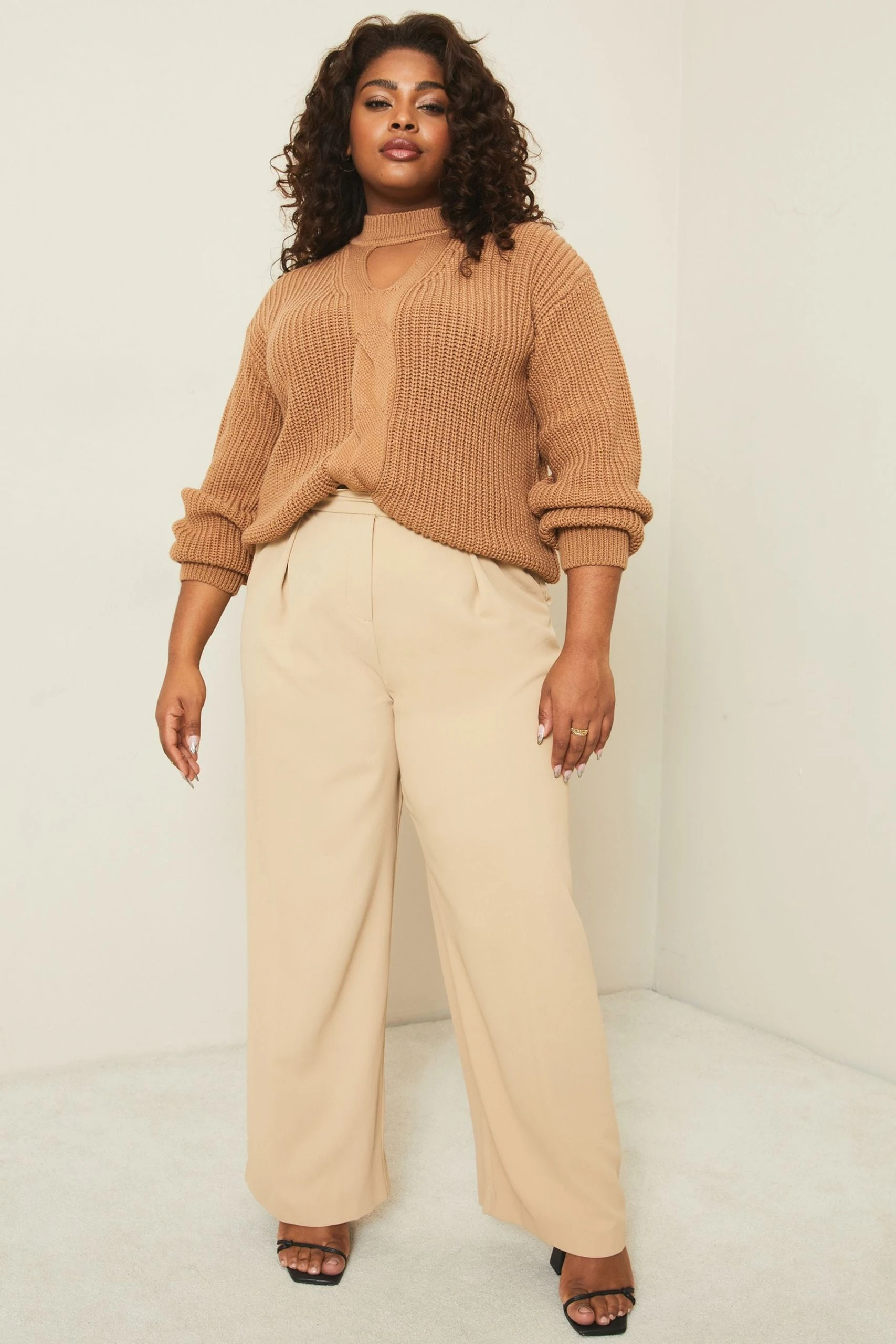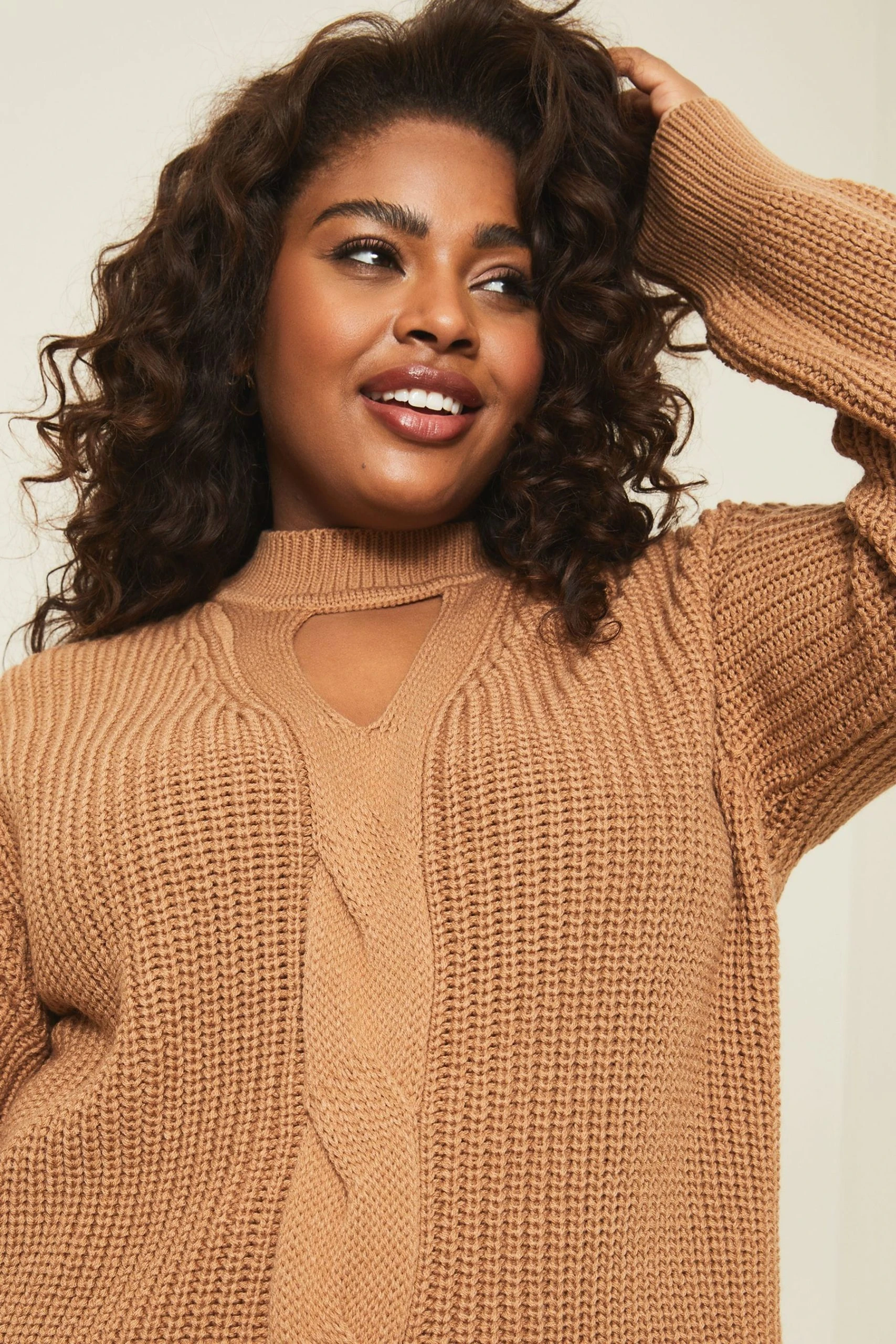 A cosy turtle neck jumper featuring a cut out and cable design down the centre front. Model wears size UK8.