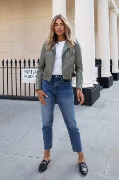 A faux leather jacket from Lipsy with zip and buckle features.