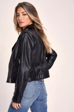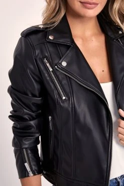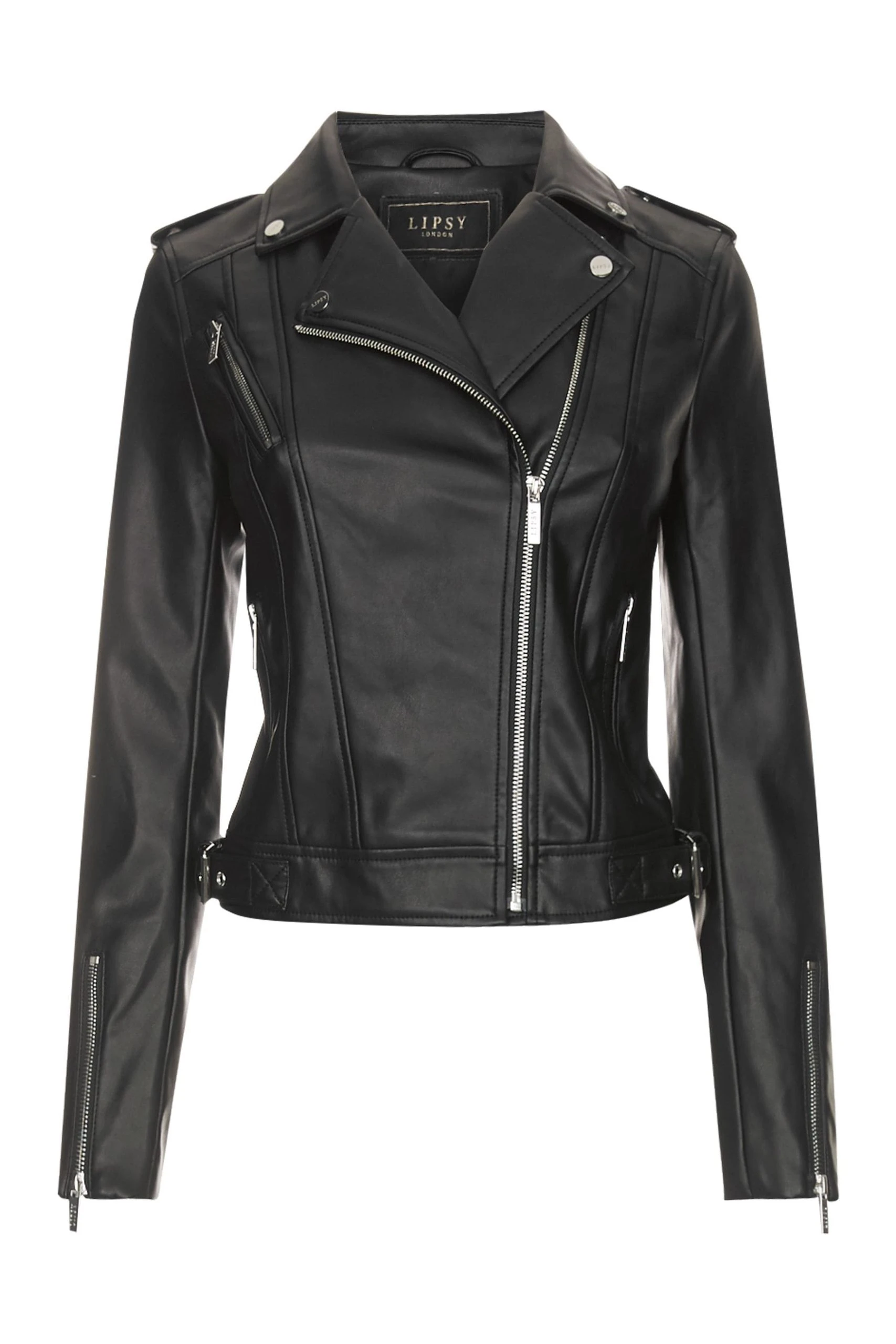 A faux leather jacket from Lipsy with zip and buckle features.