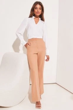 Update your wardrobe with this simple but stylish blouse. This style features pleated ruffle detailing on the neck and cuff as well as a tie neck.