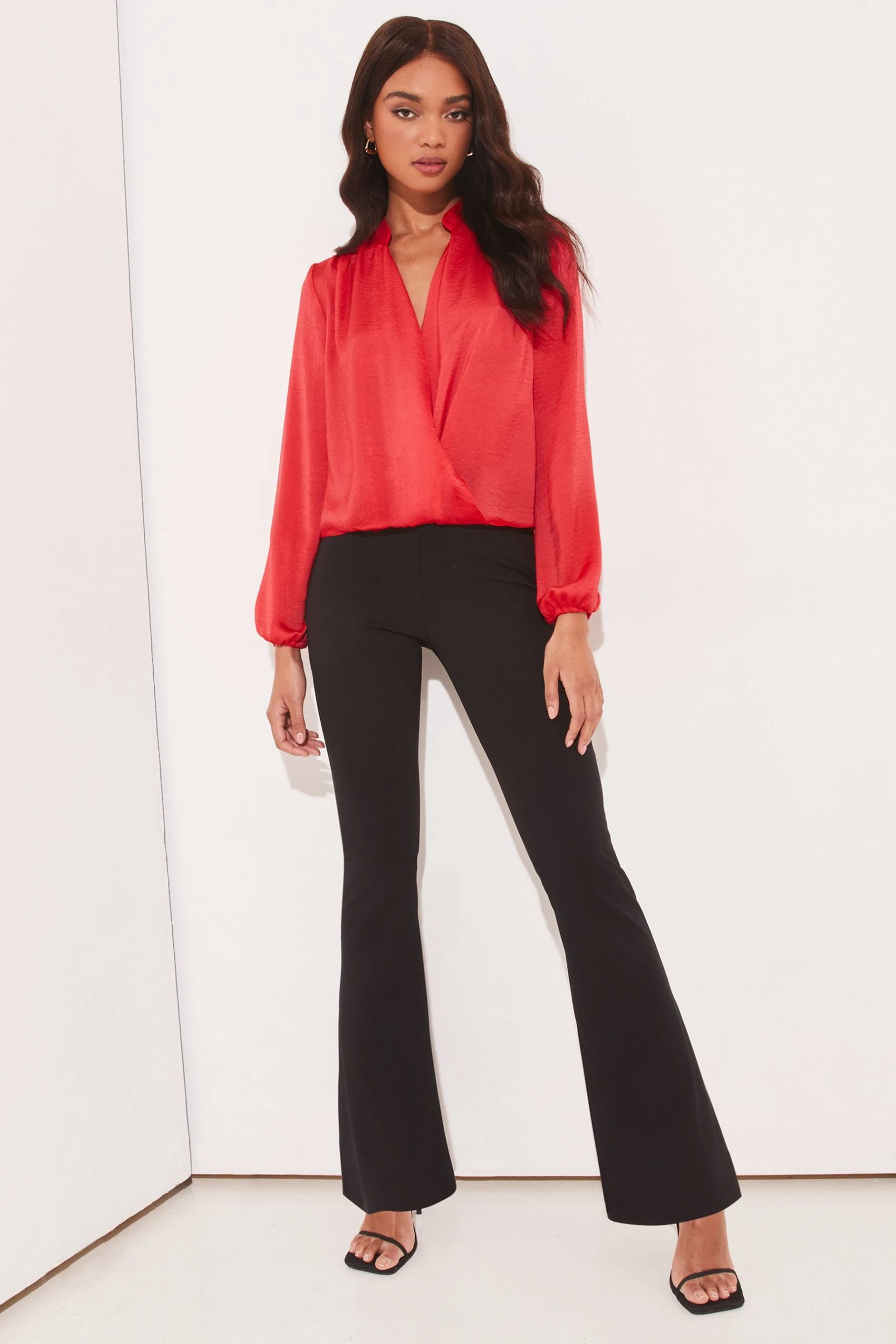 Regular fit blouse from Lipsy. This blouse features long sleeves and a grandad collar. Pair with PU leggings or your favourite jeans for the perfect desk to dinner look.