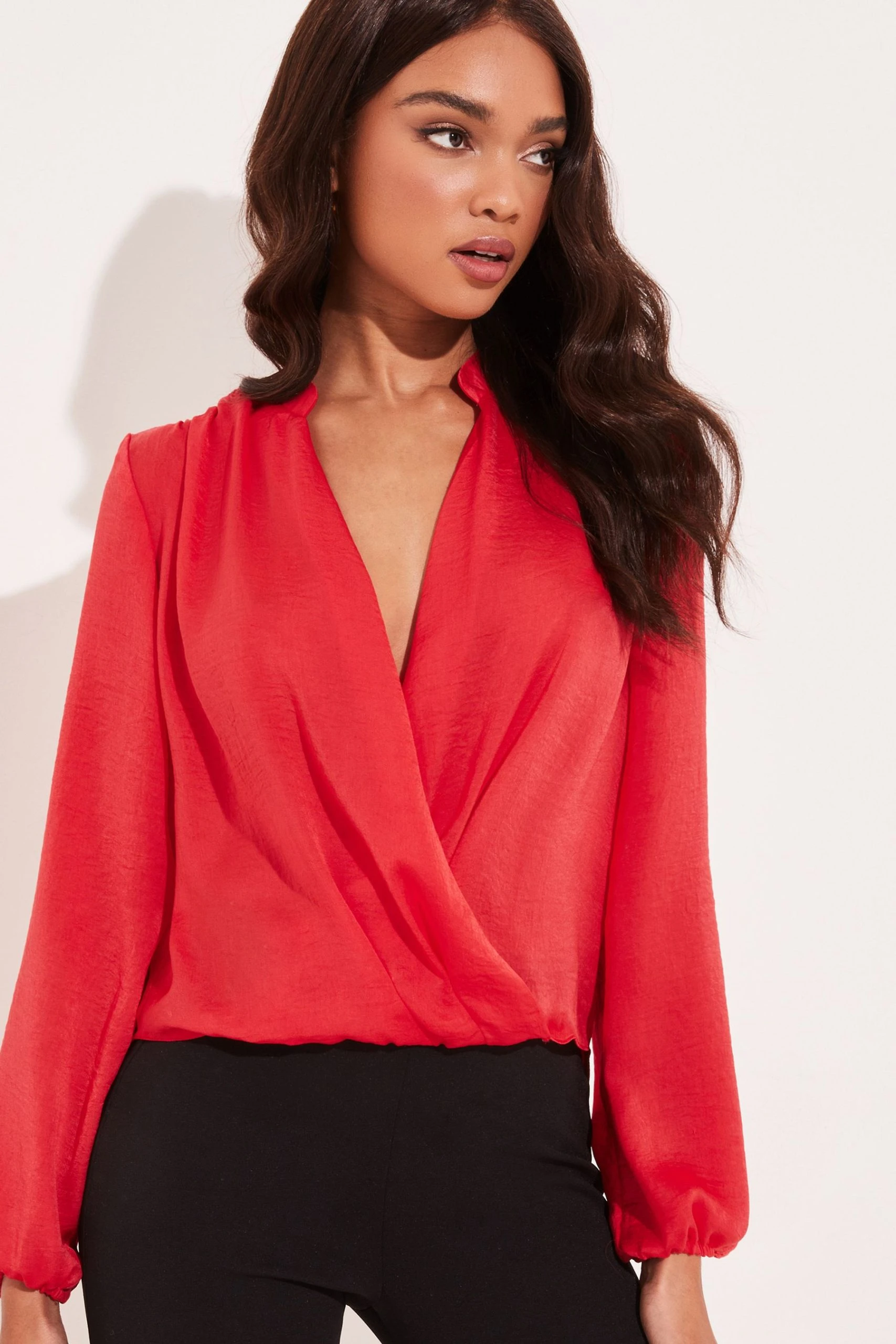 Lipsy Trim Insert Ruffle V Neck Tie Long Sleeve Chiffon Blouse
