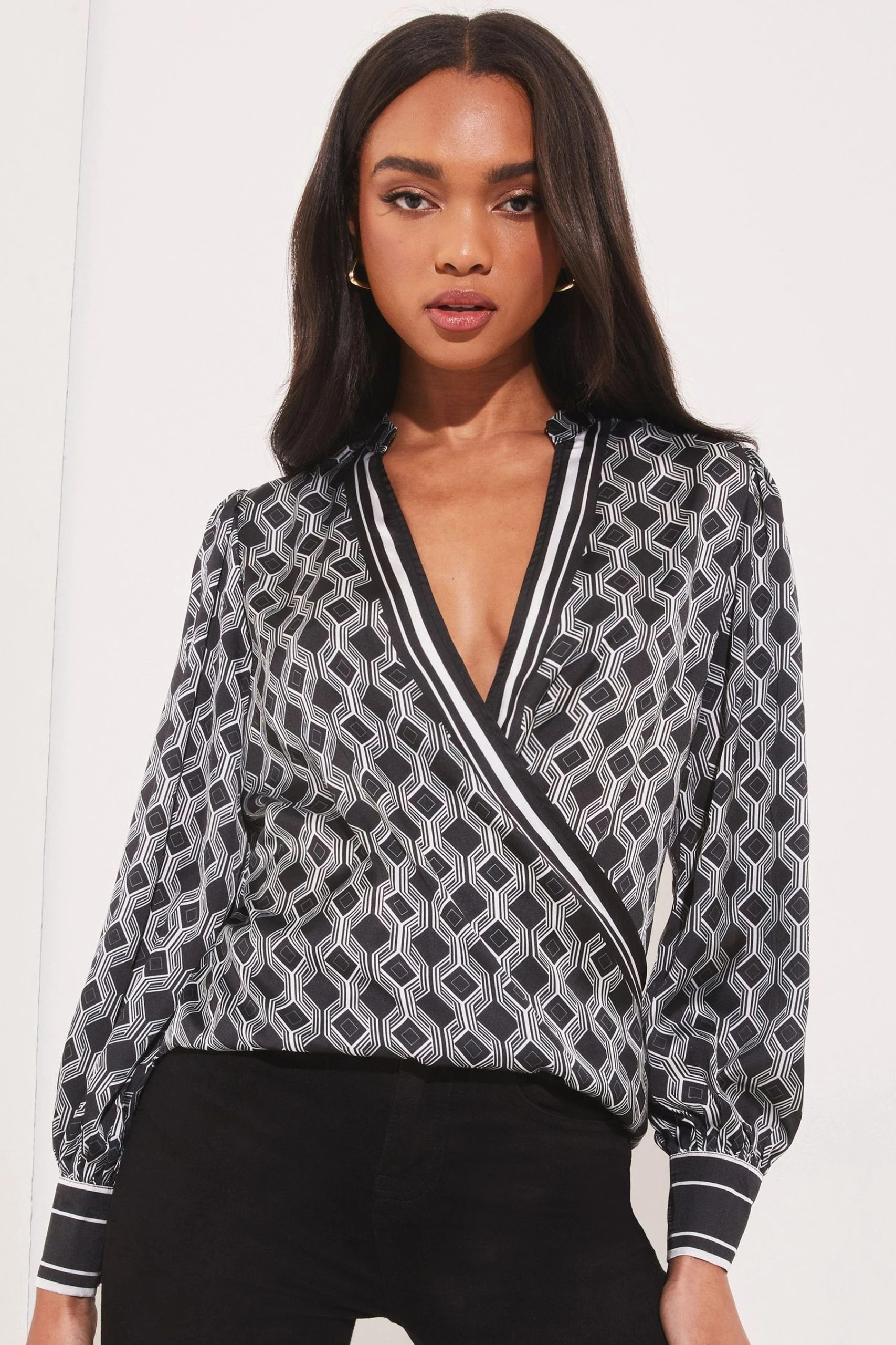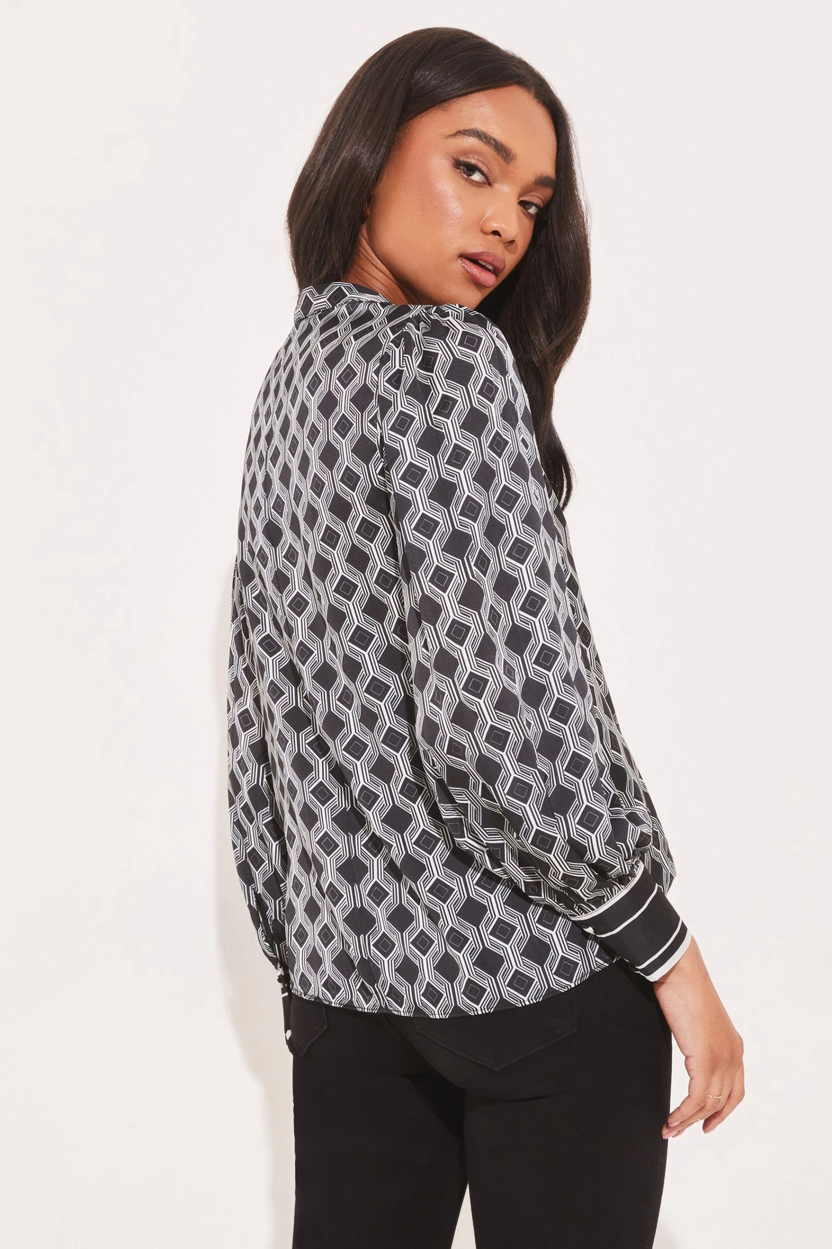 Regular fit blouse from Lipsy. This blouse features long sleeves and a grandad collar. Pair with PU leggings or your favourite jeans for the perfect desk to dinner look.