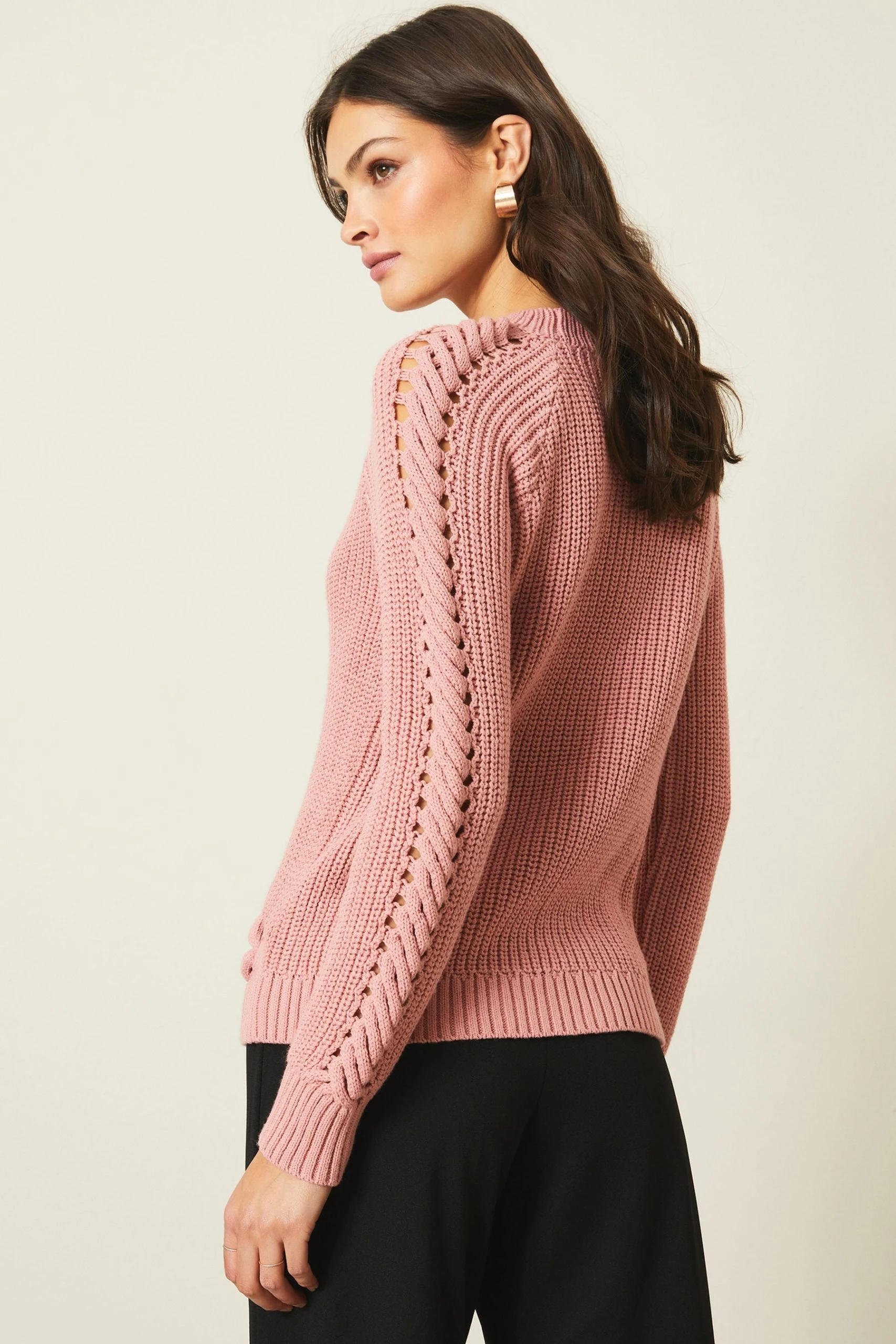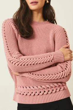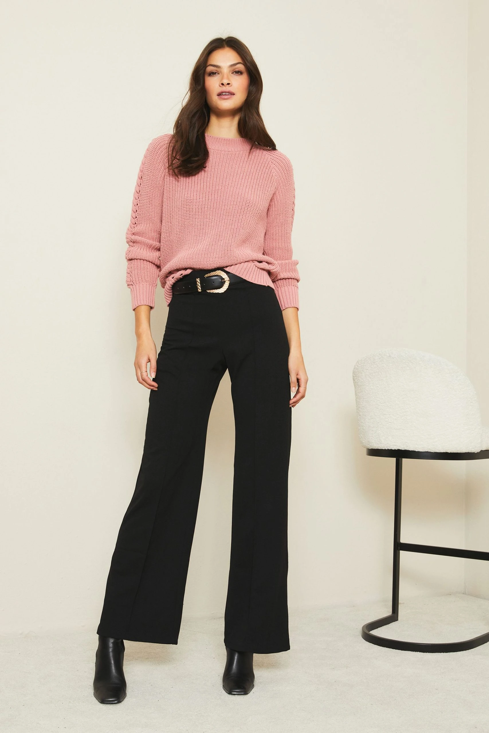 A cosy jumper featuring a gorgeous plait design across hem. Model wears size UK8.