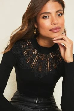 A gorgeous fine gauge jumpr featruing beautiful intricate lace detailing on the yoke. Model wears size UK8.