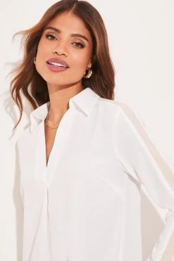 Relaxed fit blouse from Lipsy featuring a notch V neck neckline. This style has 3/4 sleeves with a roll up and tab. A smart blouse, perfect for every day wear.