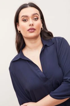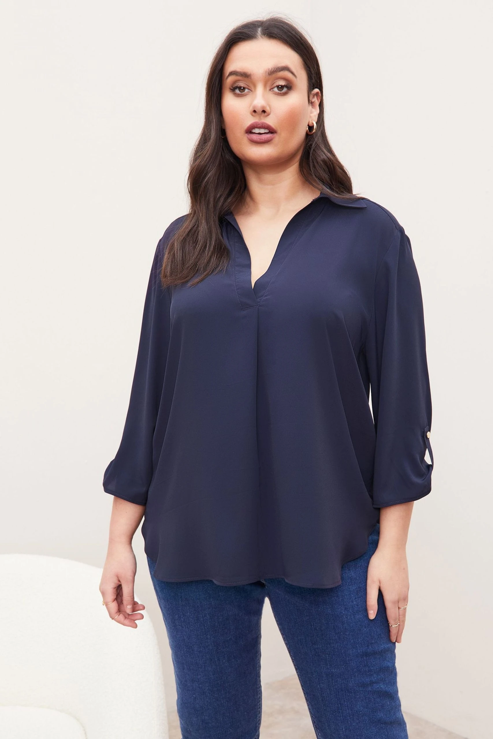 Relaxed fit blouse from Lipsy featuring a notch V neck neckline. This style has 3/4 sleeves with a roll up and tab. A smart blouse, perfect for every day wear.