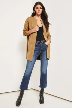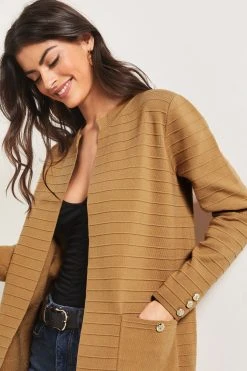 Ideal for transitioning between the season, featuring horizontal wide rib detailing, and button details on sleeves and pockets. Model wears size UK8.