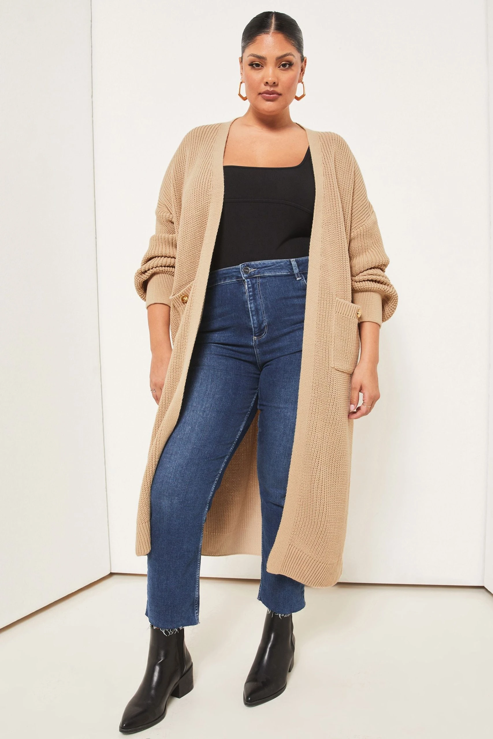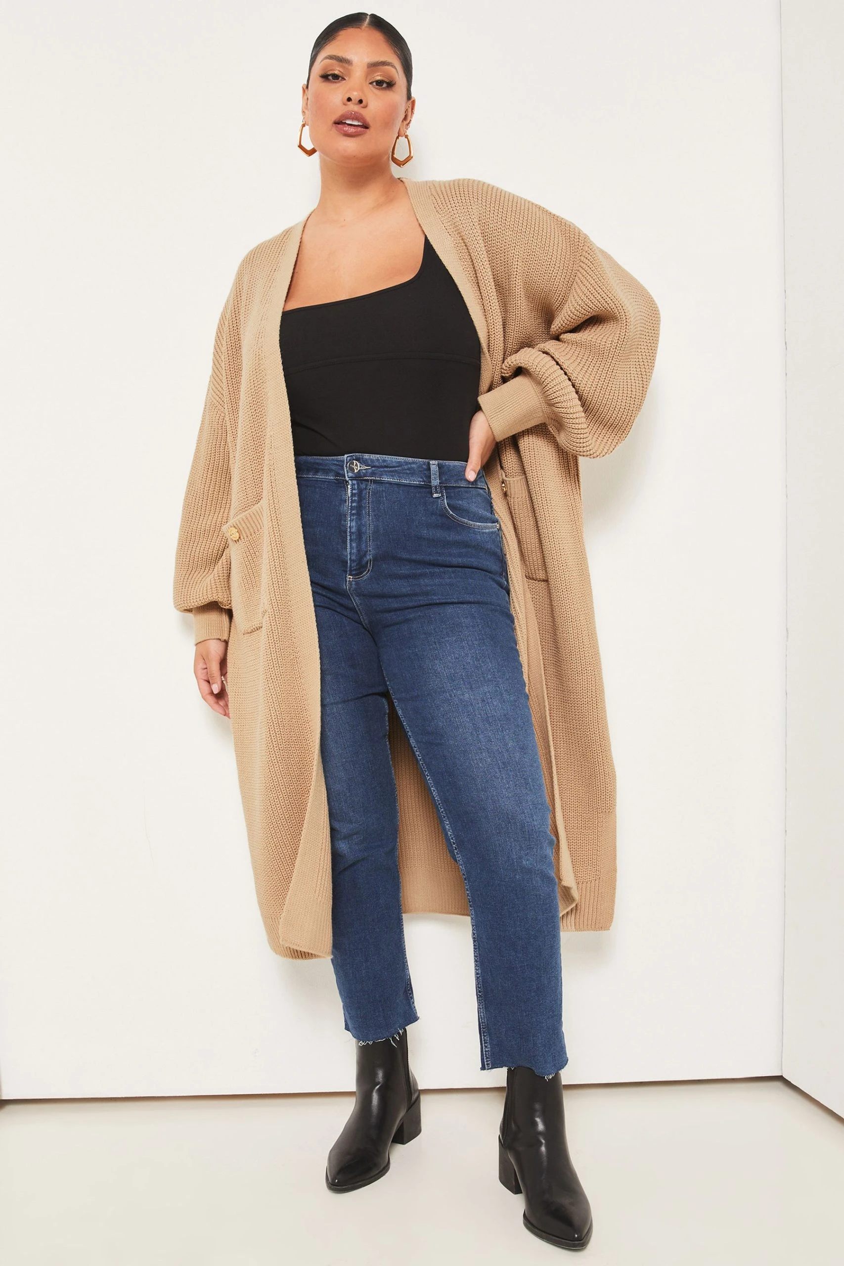 An essential addition to your wardrobe, a longline ribbed cardigan from Lipsy. Model wears size UK8.