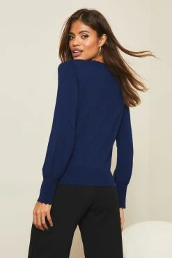 A classic piece your can wear all year round. Lipsy fine gauge knitted cardigan in long sleeve with scallop trim detailing and tipping. Model wears UK 8.