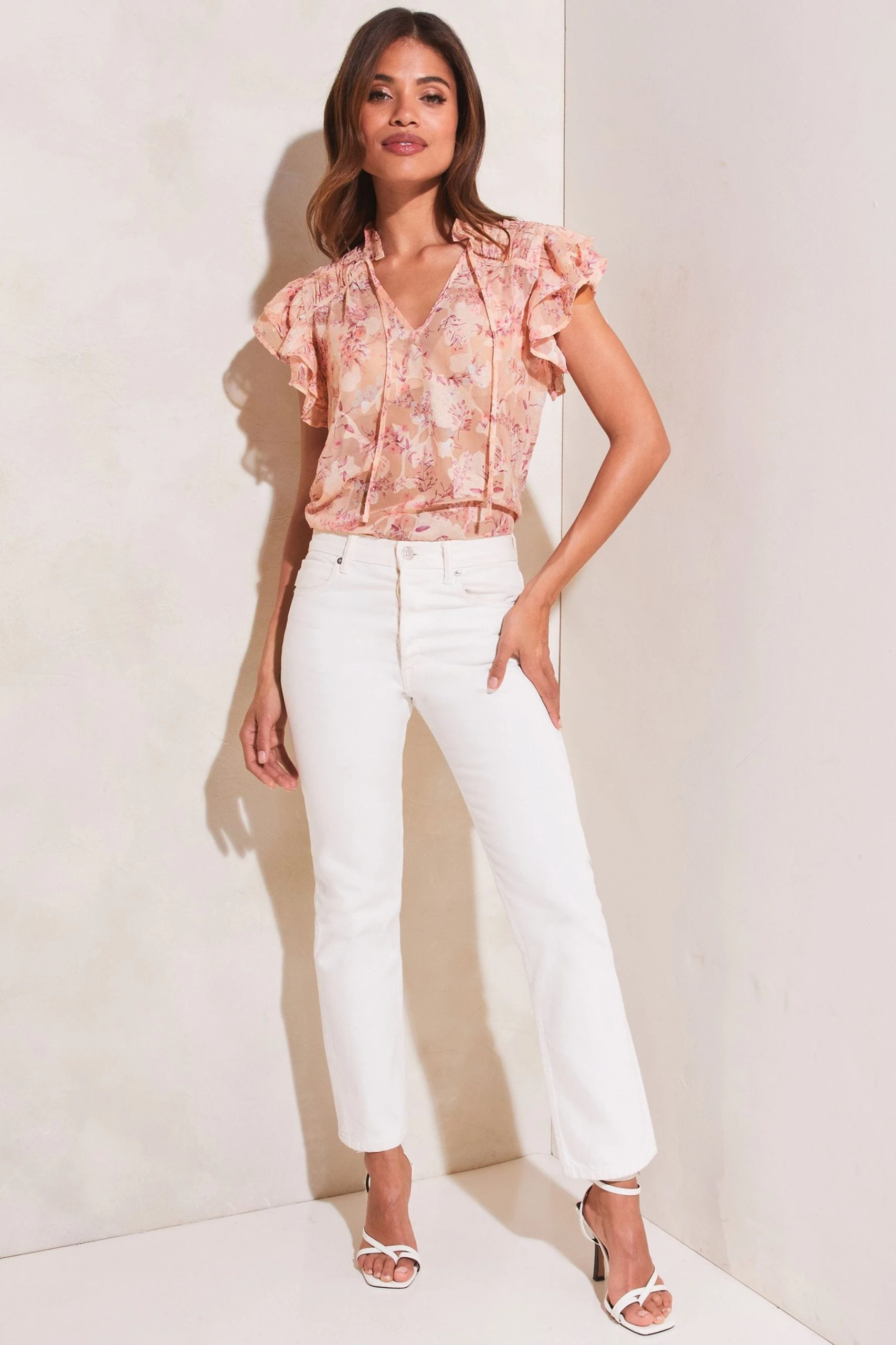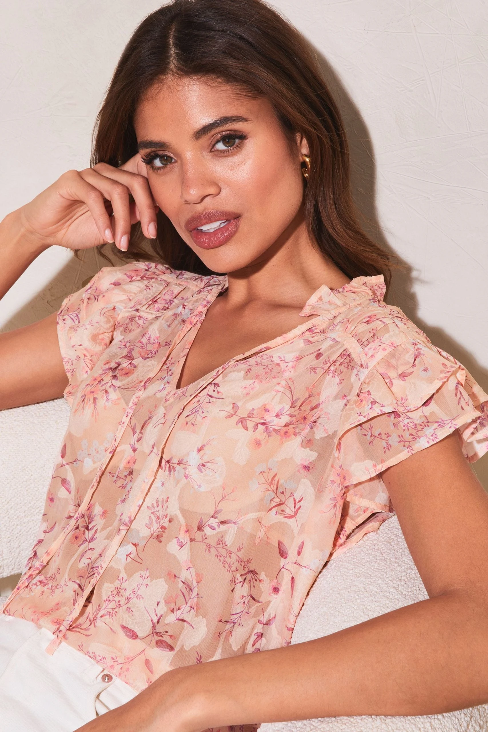 Lipsy Trim Insert Ruffle V Neck Tie Long Sleeve Chiffon Blouse