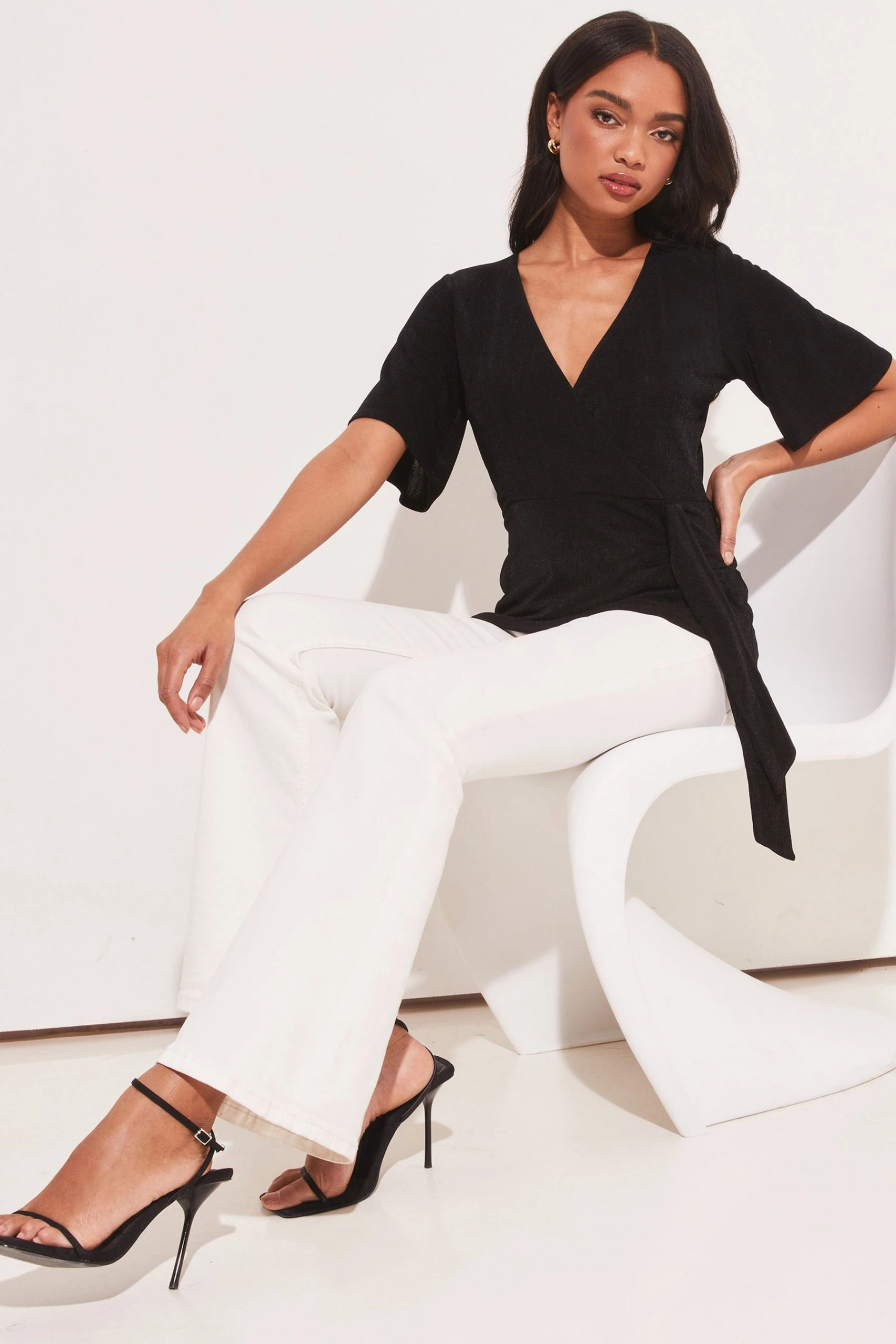 Flutter short sleeve top from Lipsy. This style is a wrap top with a fixed tie at waist. A really flattering style coming in a range of colours.