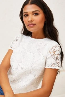 Upgrade your basics with this lace all over short sleeve top. A versatile piece to dress up or down for any occasion.