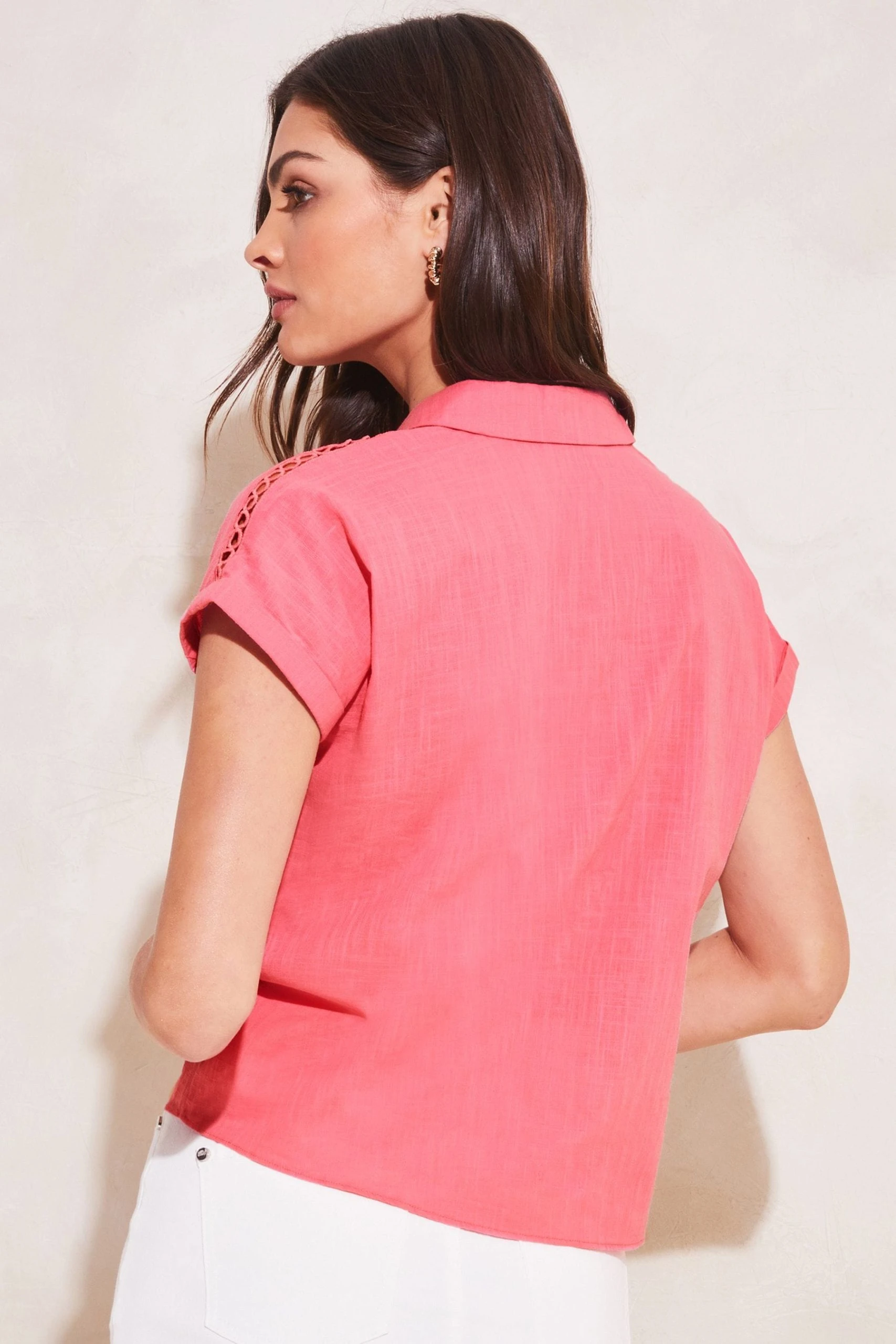 This gorgeous short sleeve shirt from Lipsy is Spring/Summer wardrobe essential. Featuring a tie front detail and made in a soft linen fabric this top is as stylish as it is comfortable.