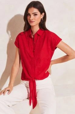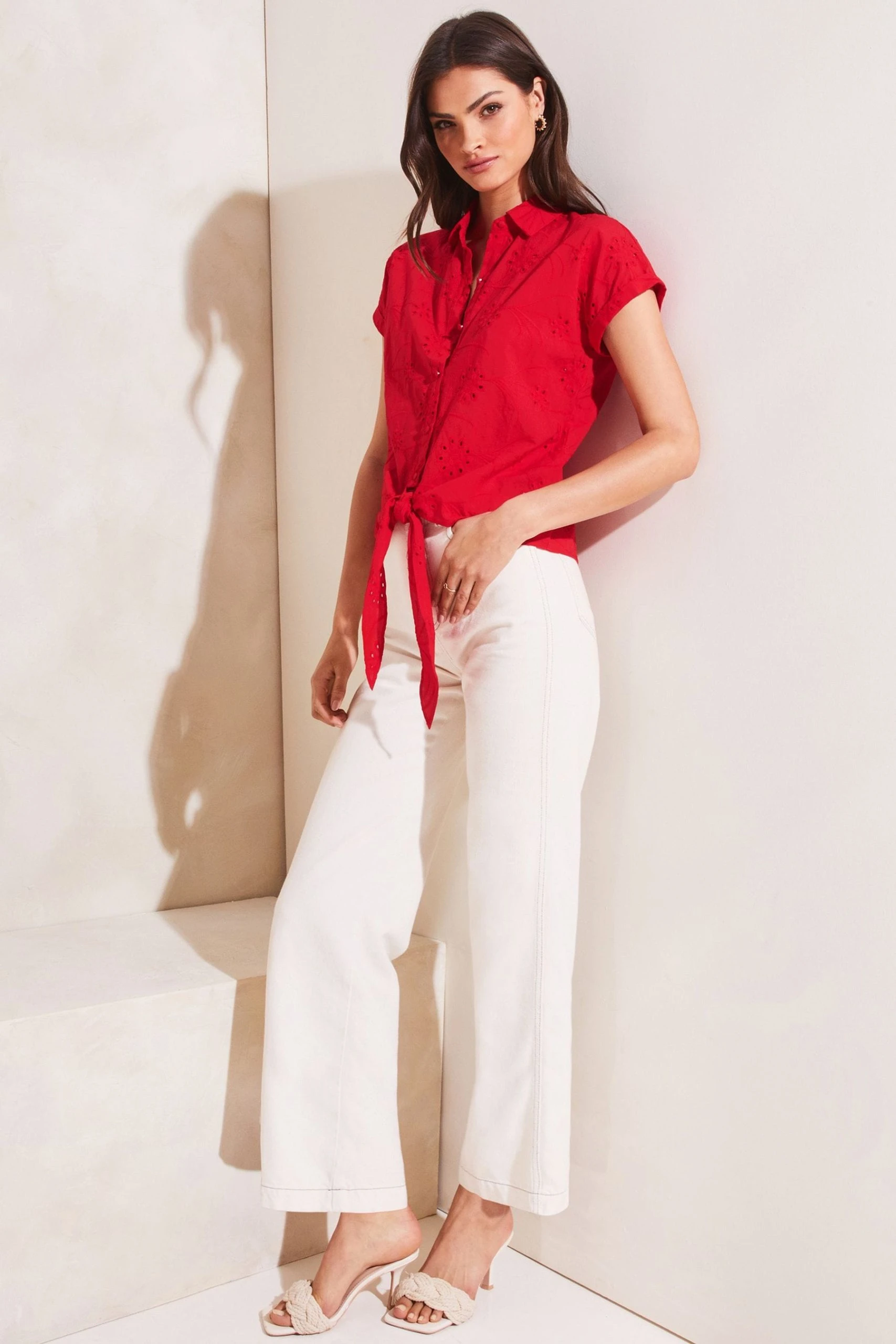 This gorgeous short sleeve shirt from Lipsy is Spring/Summer wardrobe essential. Featuring a tie front detail and made in a soft linen fabric this top is as stylish as it is comfortable.