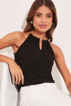 Sleeveless halter top from Lipsy. This style features a chain neck detail and is a regular length. Pair with your favourite jeans and heels for an easy Summer evening look!