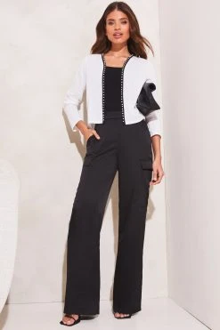 Elevate your cardigan collection with this gorgeous tipped cardigan from Lipsy. This style is cropped with a pearl trim on the placket and neck.