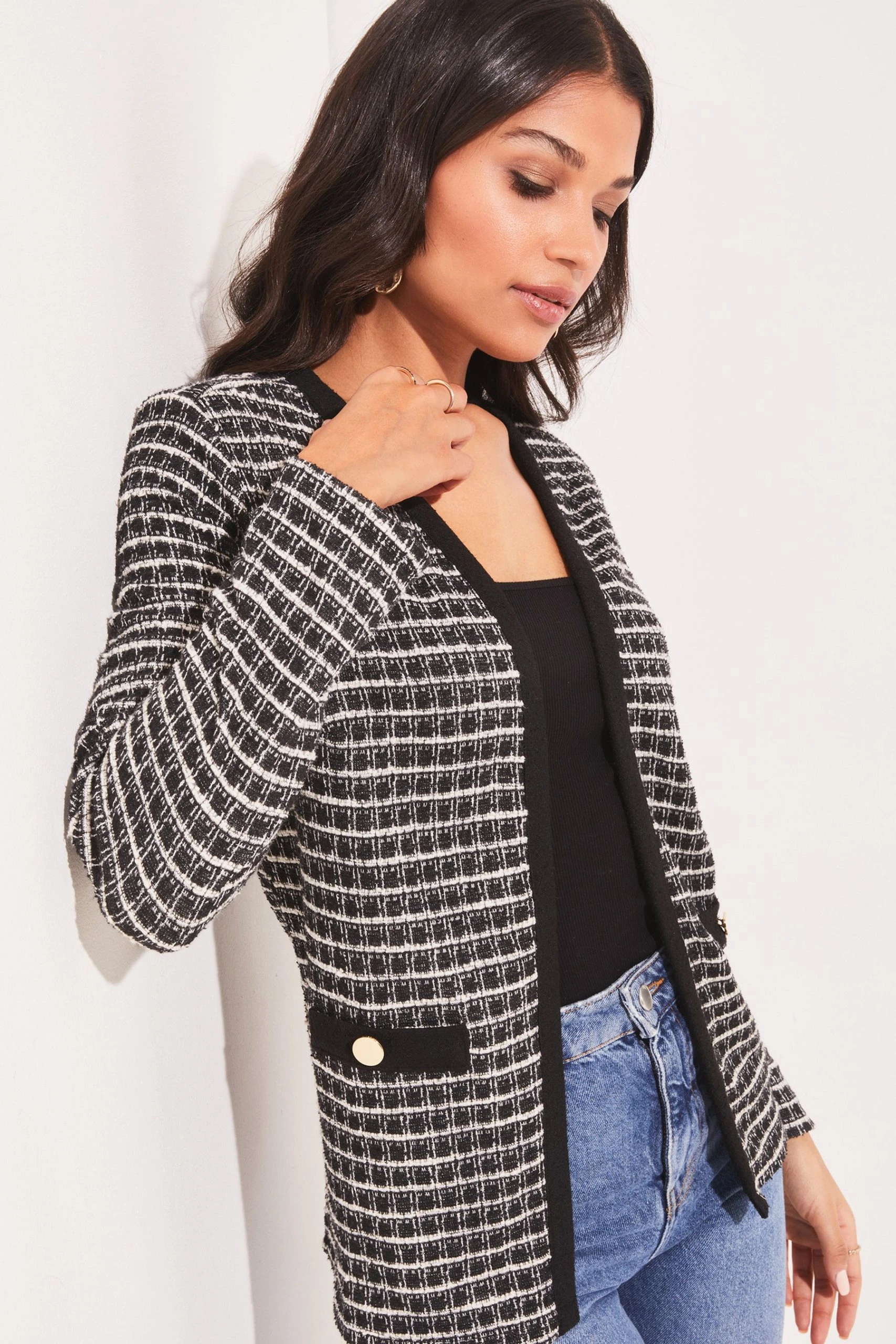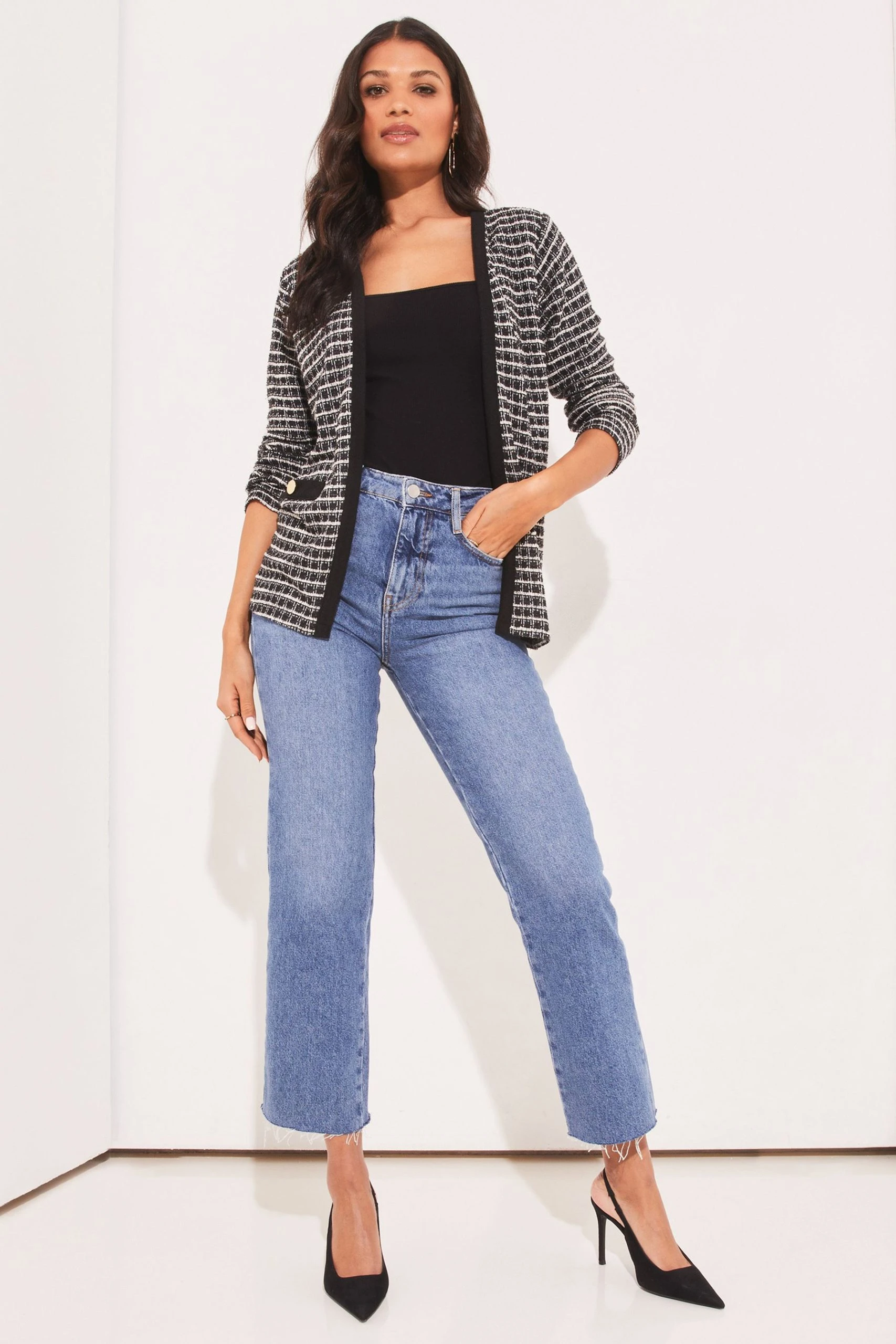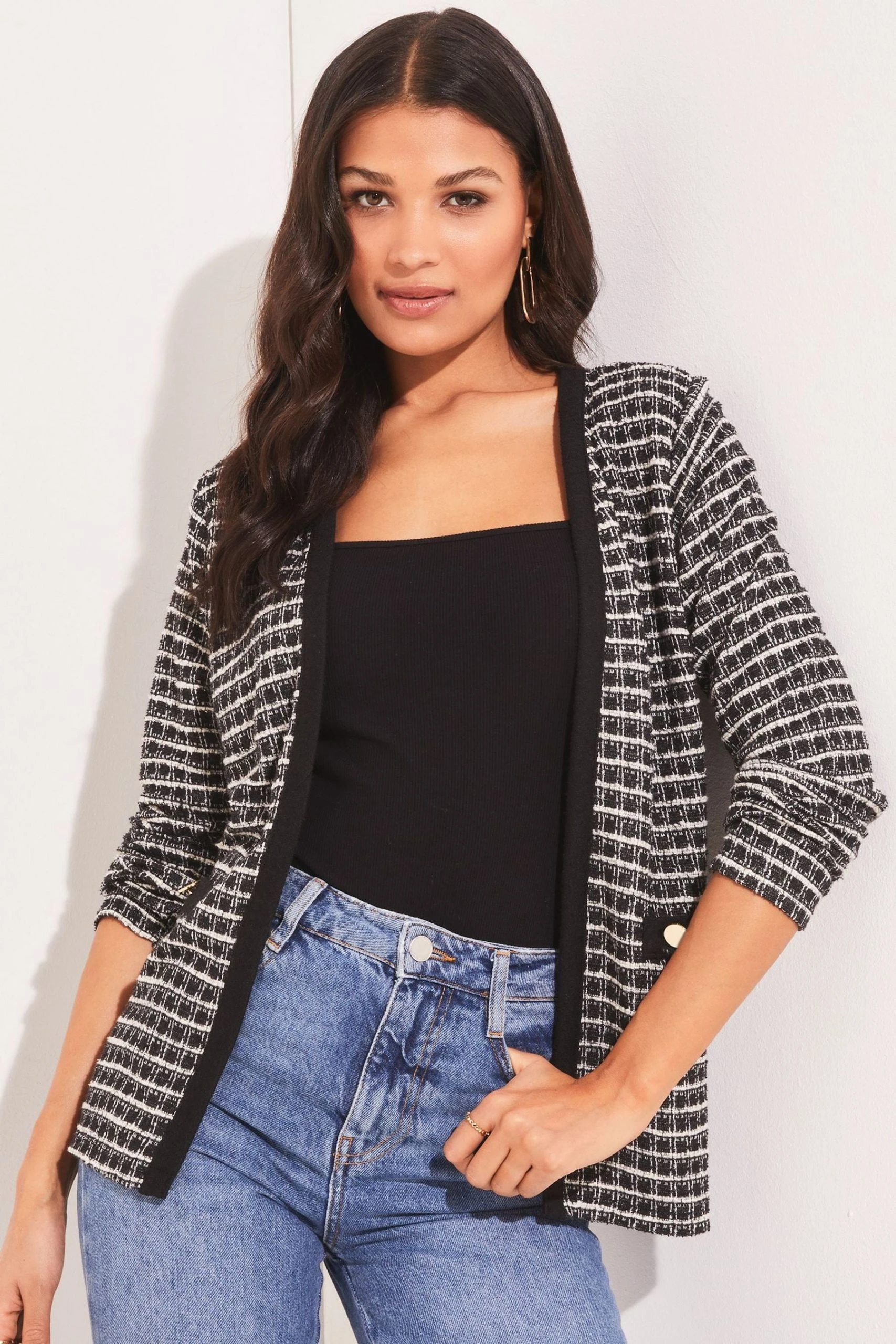 A lightweight button up cardigan, featuring pockets and white tipped edges. This comfortable cardigan is ideal for everyday wear.