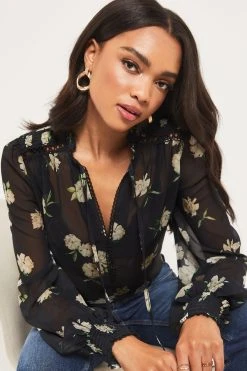 Lipsy Trim Insert Ruffle V Neck Tie Long Sleeve Chiffon Blouse