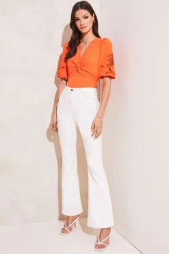 A gorgeous puff sleeve top from Lipsy, with a flattering twist front detail. This stylish top feautures beautiful lace artwork along the sleeves and is the perfect addition to every wardrobe.