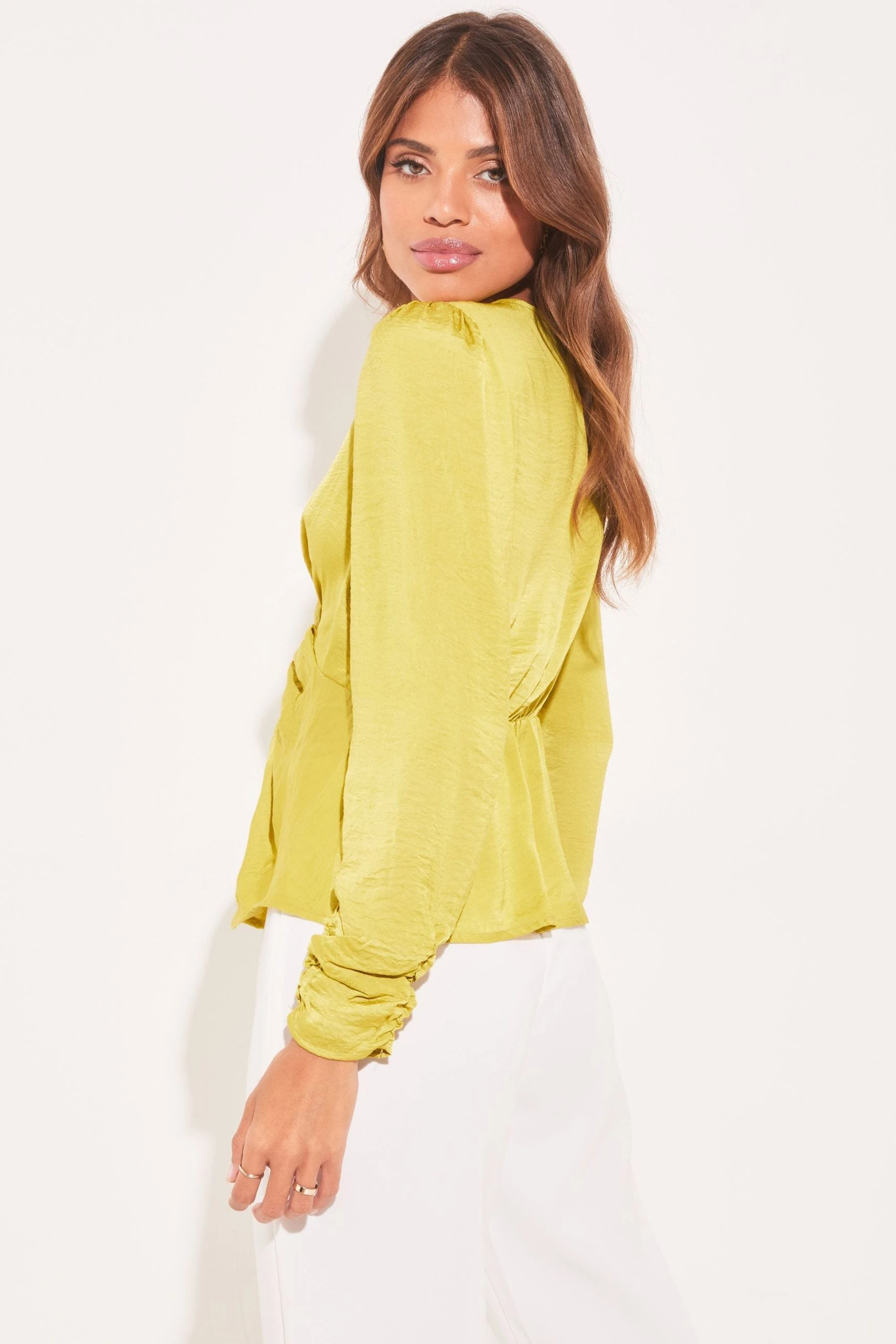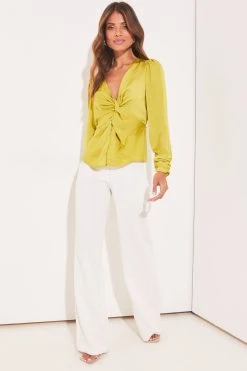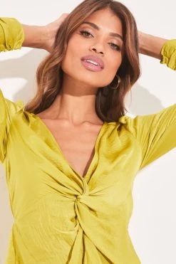 A long sleeved V neck top with stunning twist front detailing, that can be worn for multiple occasions. It can be dressed up for an evening out or worn as a smart top for work. The ideal addition to your wardrobe.