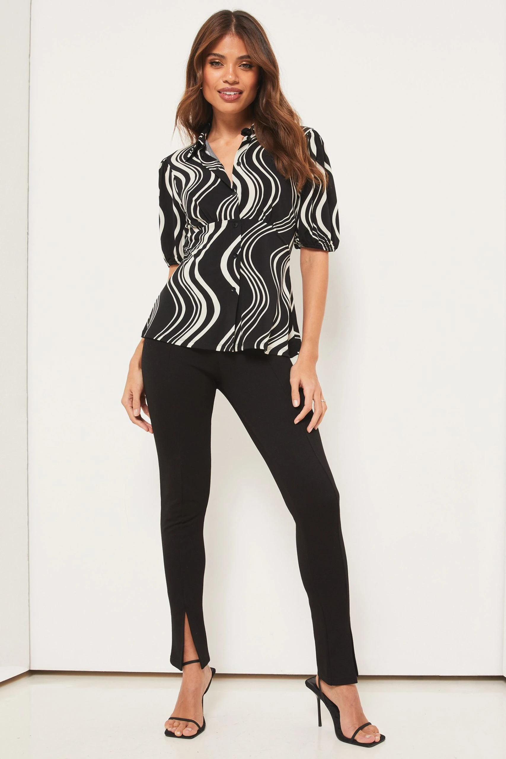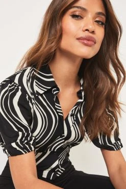 Short puff sleeve top from Lipsy featuring and underbust seam for a flattering fit. This style has a collar and buttons.