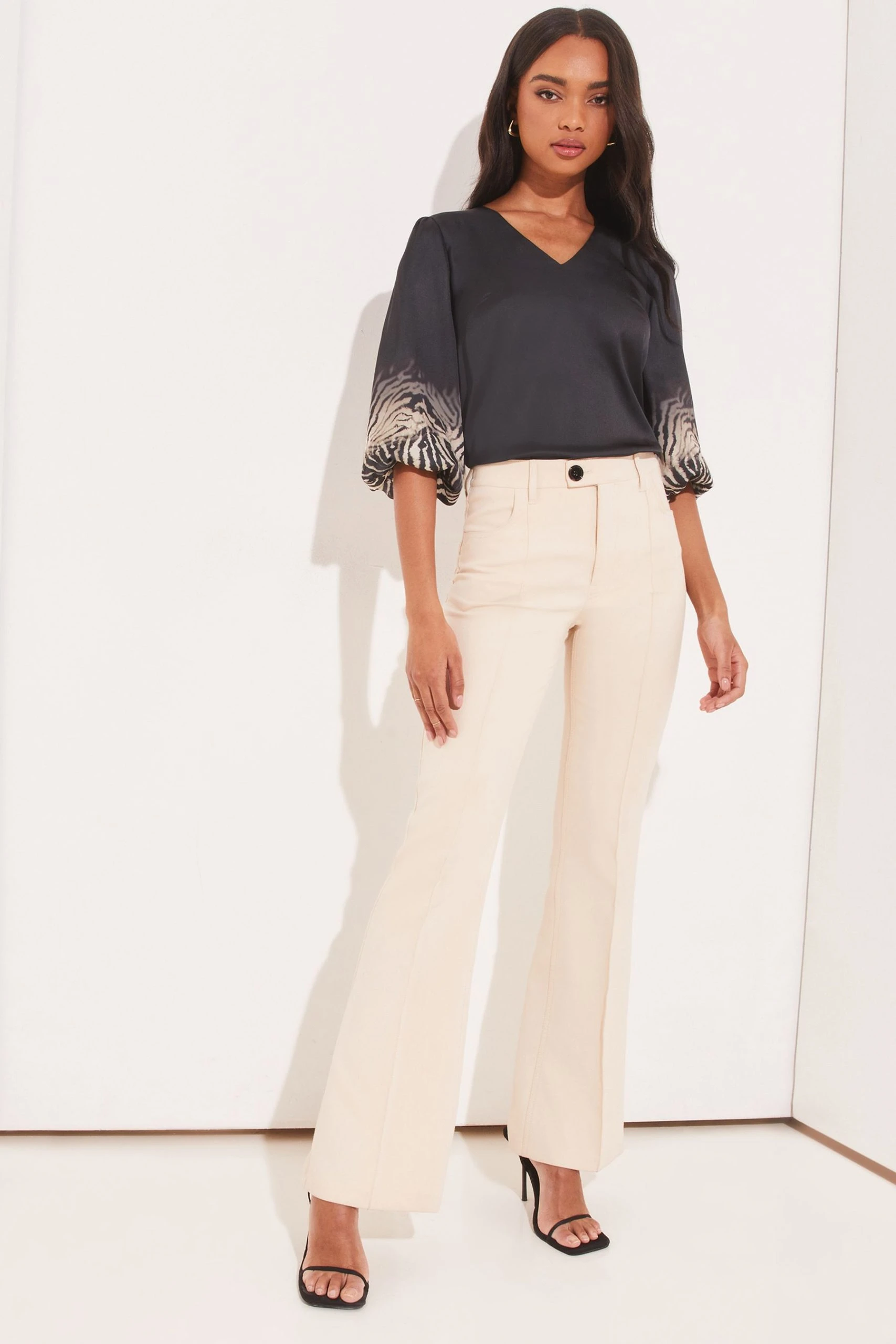 Regular fit top from Lipsy. This top features a V neck line and 3/4 length sleeve with print detail. Pair this versatile top with our tailored trousers for a stylish Spring/Summer look.