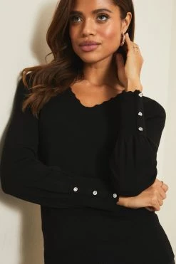 A v neck scallop jumper from Lipsy. An essential addition to your warbrobe. Model wears size UK8.