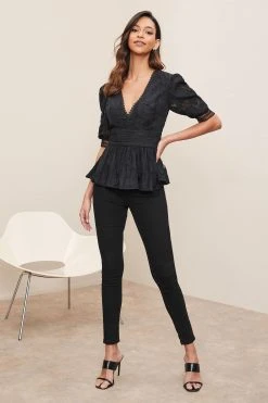 V Neck short sleeve wasited top from Lipsy. This style has trims around the cuff, waist and neckline.