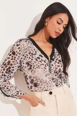 Loose fit V neck top from Lipsy featuring a zip detail. This has a roll up sleeve finishing at 3/4 length.