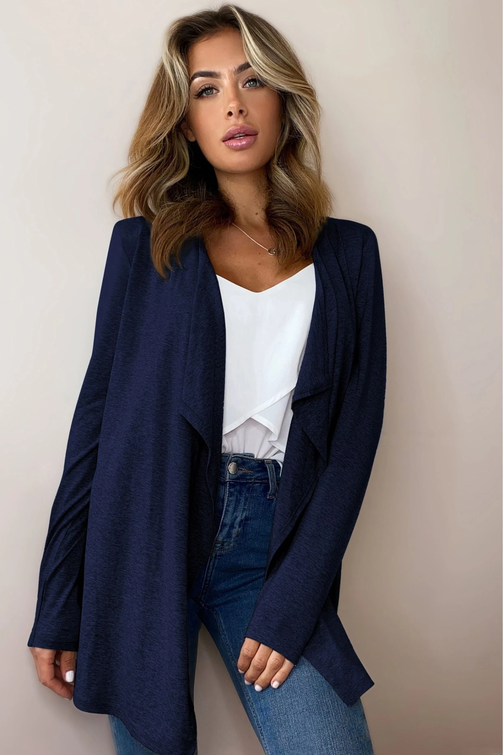 A cardigan from Lipsy featuring a waterfall design. Wearing Length – 70 cms approx.