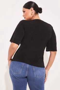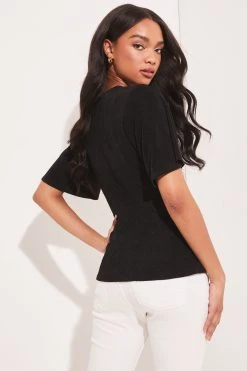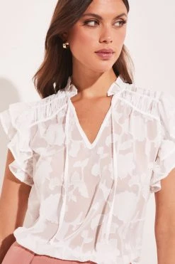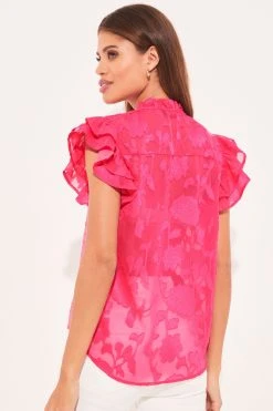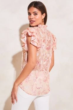 Lipsy Sheer Pretty Frill Neck Tie Ruffle Short Sleeve Shell Top